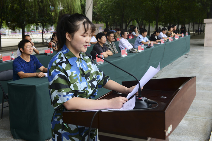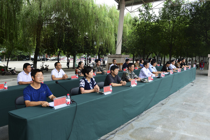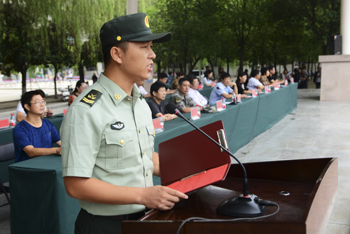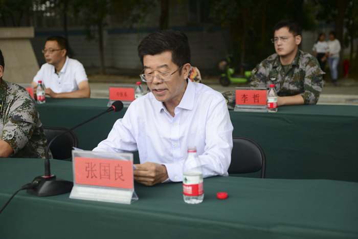 纪委书记张国良做了重要讲话。在讲话中,他希望刚刚参军的同学们要牢记使命、刻苦训练,敢于牺牲、献身国防,做有灵魂、有本事、有血性、有品德的当代军人。他着重对2018级新生军训工作提出了几点要求:一是全体参训人员通力合作,精心组织,确保安全、有序、圆满地完成今年的军训任务。二是要了解新生的思想和心理特点,实施有效的思想政治教育和科学军训方法,确保军训达到良好的效果。三是希望全体参训同学经过军训达到精神、体魄双丰收,为今后三年的学习、生活、工作打下坚实的基础。