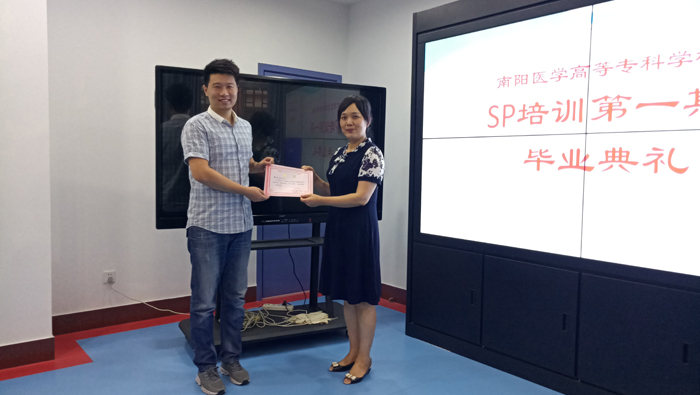本网讯(文/教务处 周玉金)多盈手机在线登录首期标准化病人(SP)培训班毕业典礼于7月10下午召开,首批15名学员顺利通过严格考核,拿到了培训合格证书。