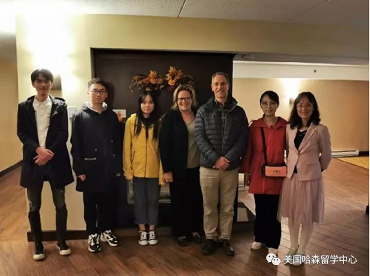 (图为邓琳琳老师、黄金珠老师、学生甄嫚瑜、胡丁盟、闫一亮与哈森大学副校长兼教务处长Lynne Coy-Ogan合影)
