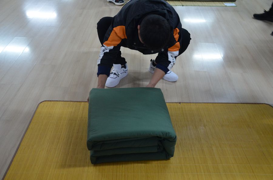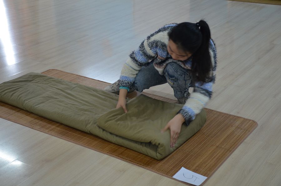本次叠被子活动以“文明宿舍,精彩生活”为主题,活动现场气氛热烈、紧张有序。同学们行动迅速,动作娴熟,都使出自己的看家本领,拿出了最高标准。经过折、压、跪、磨、捏、修等一系列动作,一床床棱角分明、整齐划一的被子展现在大家面前。经过评选,最终男生组临床医学系李欢和女生组中医系张素馨的作品赢得了评委老师的一致好评,荣获一等奖。