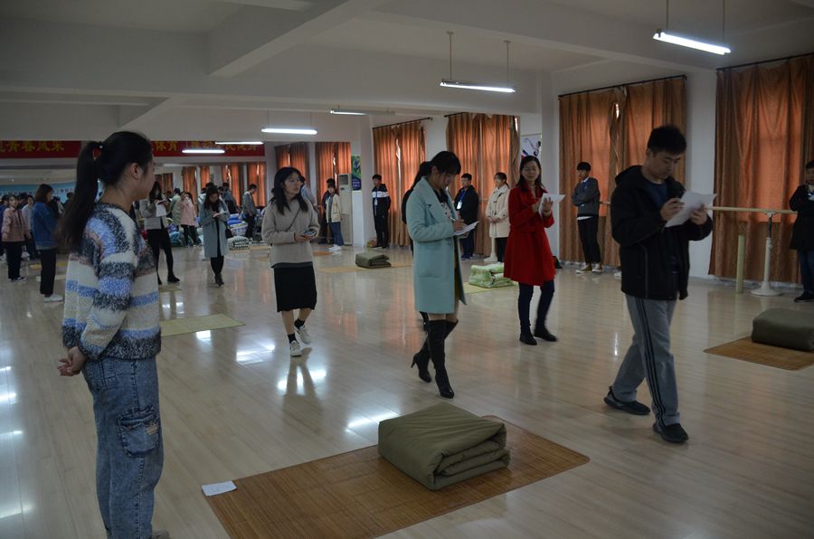 本网讯(文/临床医学系 罗莹)11月20日下午,由学生处主办、临床医学系承办的“叠出风彩,亮出风格”叠被子活动在体育馆二楼的文体活动室举办。本次活动是多盈手机在线登录第九届公寓文化节系列活动之一,由校学生处公寓科郭玉峰老师、国际教育学院学工办主任习茵及各系(部、院)负责宿管的辅导员老师担任评委。