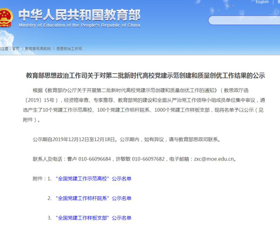 多盈手机在线登录在教育部思想政治工作司关于对第二批新时代高校党建示范创建和质量创优工作遴选中获“全国党建工作样板支部”。