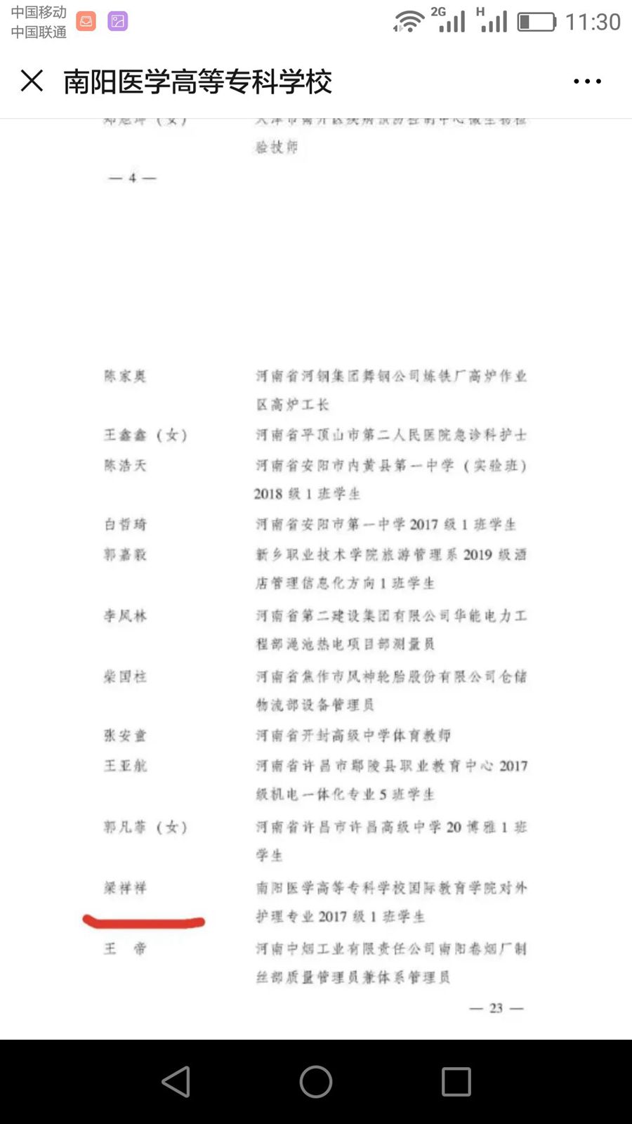 在中国人民解放军南部战区总医院实习期间,新型冠状病毒肺炎疫情爆发。梁祥祥主动请缨前往医院急诊科和发热门诊隔离病区,奋战在抗“疫”一线。急诊科预检分诊作为发热病区的第一窗口,他每天要为来院就诊患者检测体温并配合发热病区教员们工作,防护服一穿就是一天。除了检测病人是否发热外,他还要护送化验病人的血标本和咽拭子,护送发热病人拍胸部CT、去发热病区进行隔离治疗,作为南阳医专仲景学子,他在祖国和人民最需要的时候,不畏惧、不退缩,勇赴抗疫一线,秉承厚德、恒志、精术、济世的校训,积极弘扬仲景精神,以实际行动彰显了新时代大学生的责任担当和青春风采。