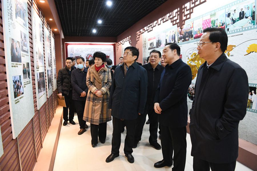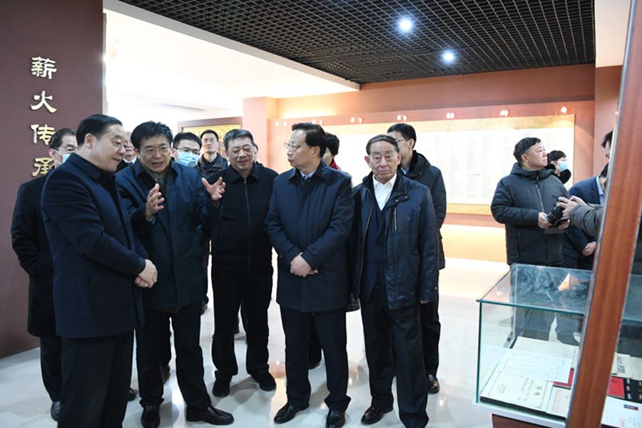 于文明局长一行来到校史馆,深入了解了学校历史沿革、办学理念、师资力量和学科设置情况,详细察看了原张仲景国医大学的历史文献、图片资料等。于局长指出,要围绕立德树人根本任务,聚焦中医药特色,抓实抓好人才培养、学科发展、科研平台建设,积极推进张仲景国医大学复建工作。