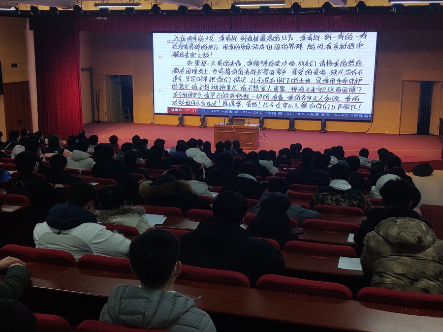 为做好此次初检工作,1月4日晚,多盈手机在线登录武装部专题召开动员会。武装部副部长余飞海借央视新闻节目《新春走基层,海拔5592米!坚守在祖国最高驻兵点》所宣传的多盈手机在线登录优秀入伍学子——范浩源先进事迹,对参加入伍初检学生进行了一场别开生面的征兵动员和思想政治教育,对初检工作进行了扎实部署,并对学生们的假期疫情防控提出了要求。