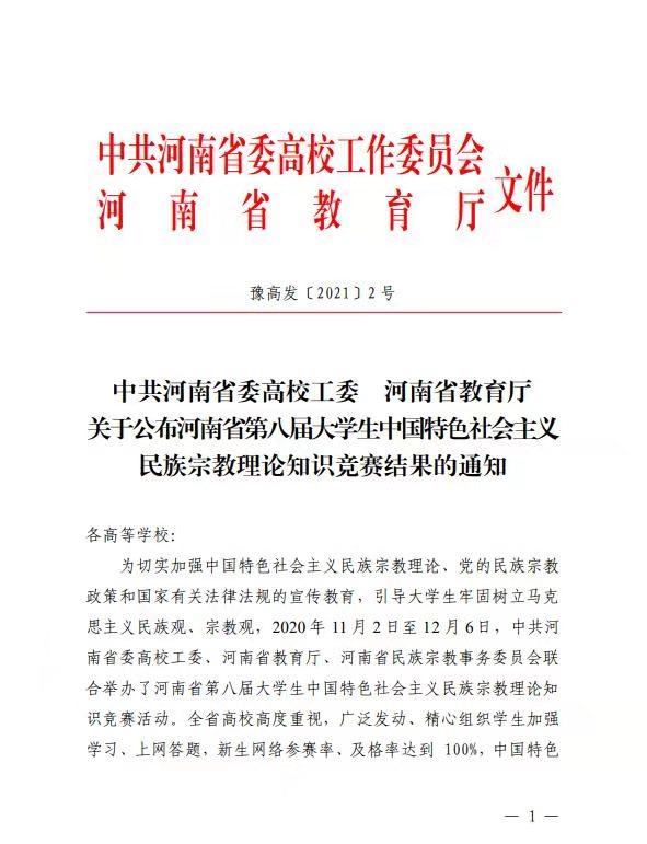 本网讯(文/党委办公室 王萍)1月4日,省委高校工委、省教育厅印发《关于公布河南省第八届大学生中国特色社会主义民族宗教理论知识竞赛结果的通知》(豫高发〔2021〕2号),多盈手机在线登录荣获全省专科学校优秀组织奖,9名大学生荣获优秀个人奖的优异成绩。