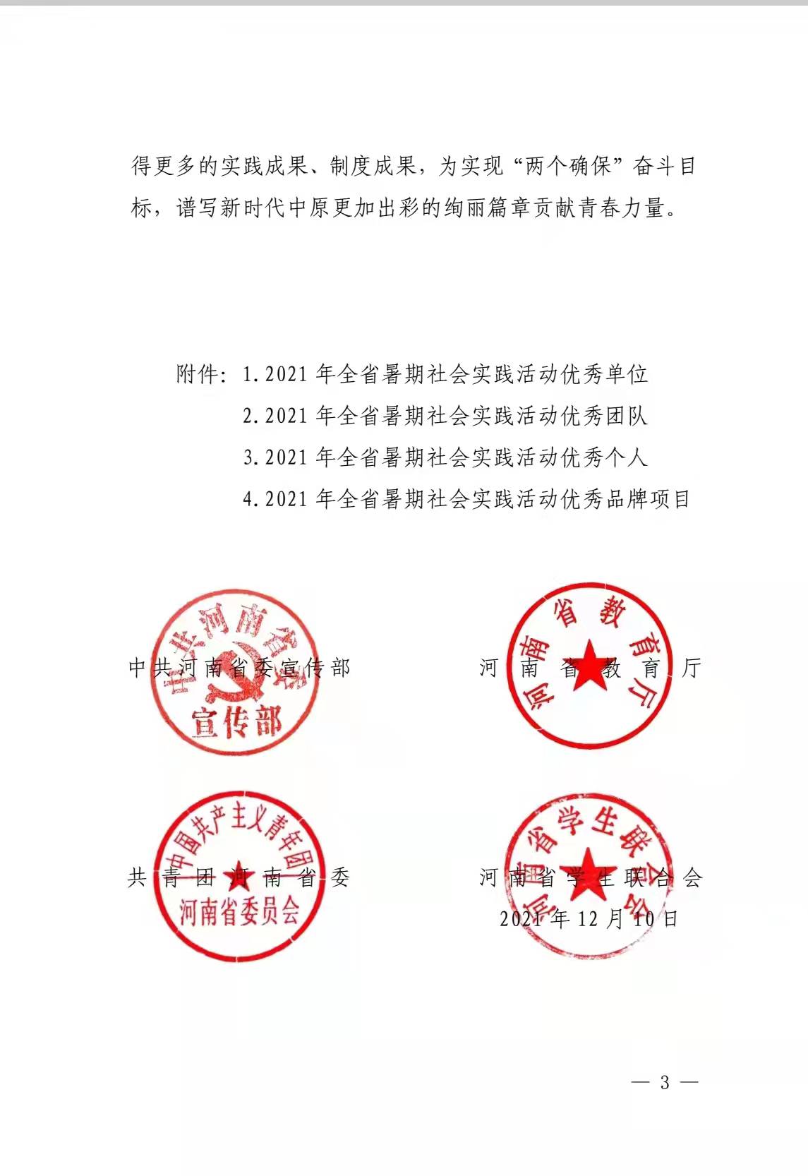 本网讯(文/校团委 古蝉蝉)近日,中共河南省委宣传部、河南省教育厅、共青团河南省委、河南省学生联合会联合发布《关于2021年全省暑期实践活动省级优秀工作典型的通报》,多盈手机在线登录团委被评为“2021年全省暑期社会实践活动优秀单位”,多盈手机在线登录针灸骨伤系志愿者党史学习实践团被评为“2021年全省暑期社会实践活动优秀实践团”。这是对多盈手机在线登录社会实践工作的充分肯定与鼓励。