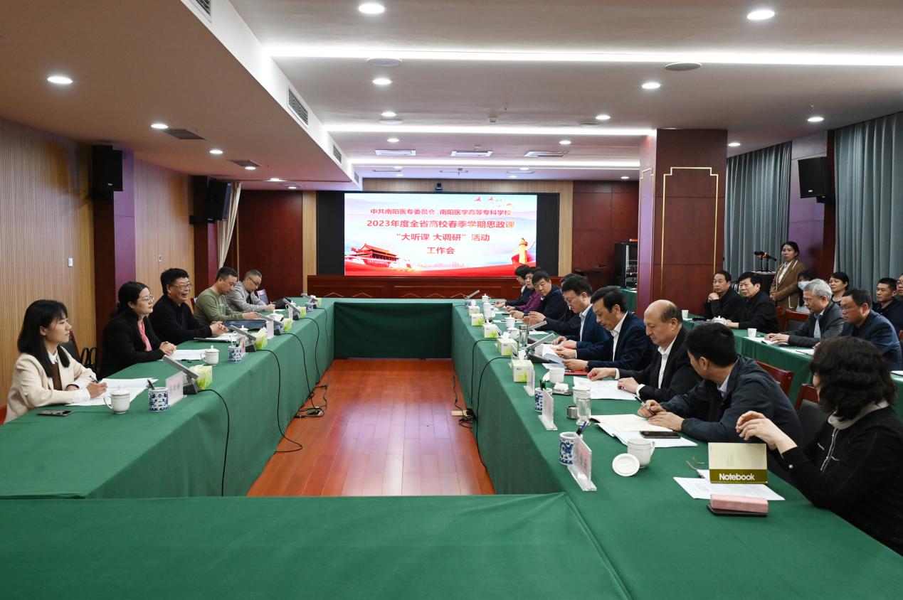 本网讯(文/马克思主义学院 卢孟)根据河南省委教育工委、河南省教育厅《关于开展2023年度全省高校思政课春季学期“大听课 大调研”活动的通知》安排,4月14日上午,以河南财经政法大学高等教育研究所所长赵增彦为组长的省第十六调研组一行五人对多盈手机在线登录思政课建设情况进行调研。调研组主要采取听、查、谈、议等方式,到班级进行“推门听课”,举办师生座谈、检查材料,听取思政课建设情况汇报,并进行意见反馈。校党委书记柳明伟、校长王立义等校领导班子成员,党政办公室、宣传部、教务处、质量管理办公室、科研处、人事处、计财处等相关部门负责人和马克思主义学院院长、部分思政课教师代表全程参与调研。