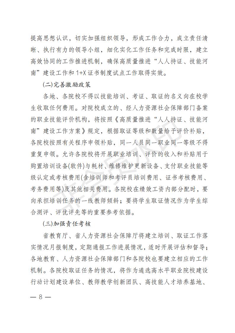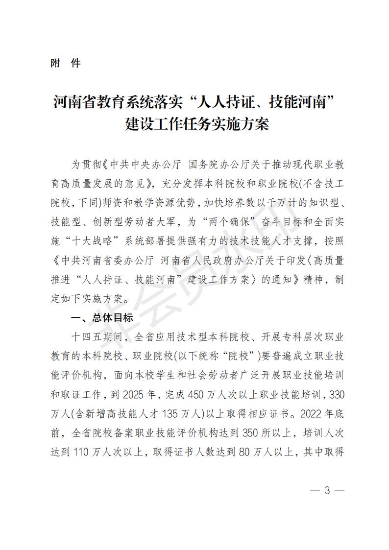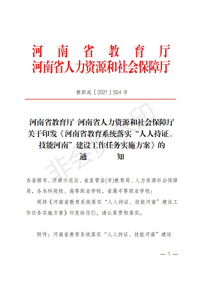 河南省教育系统落实“人人持证、技能河南”建设工作任务实施方案