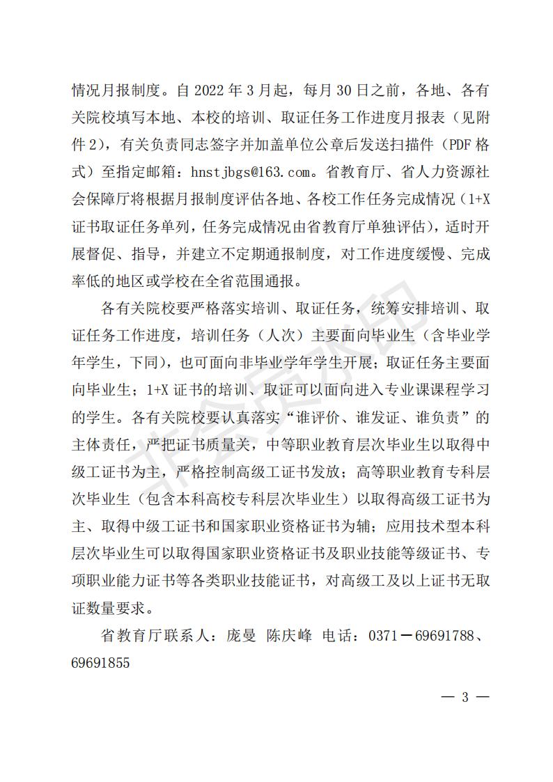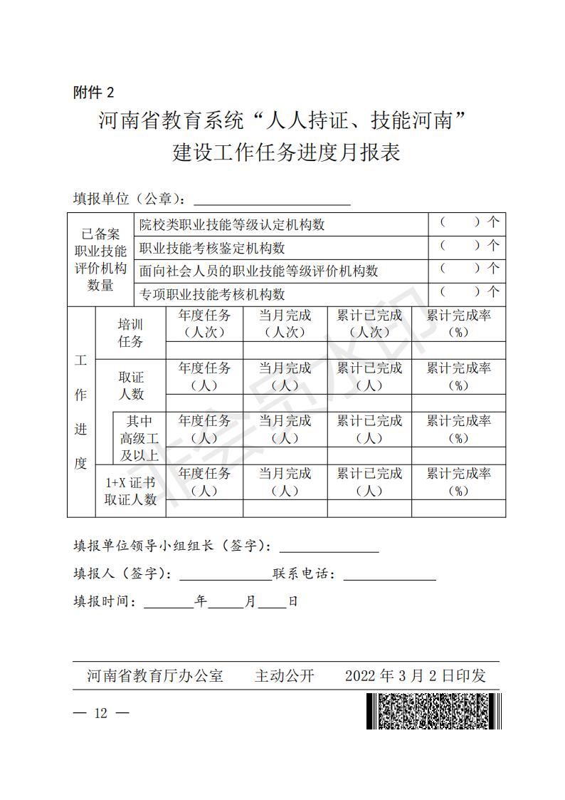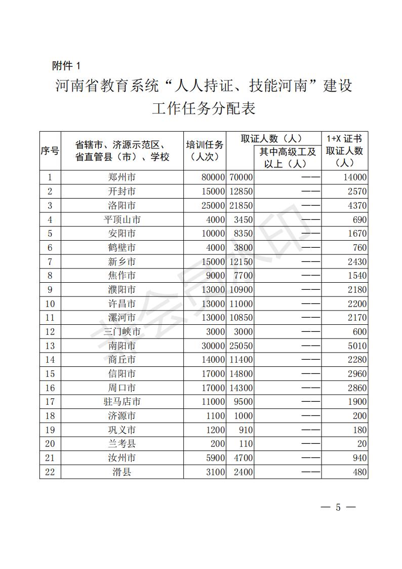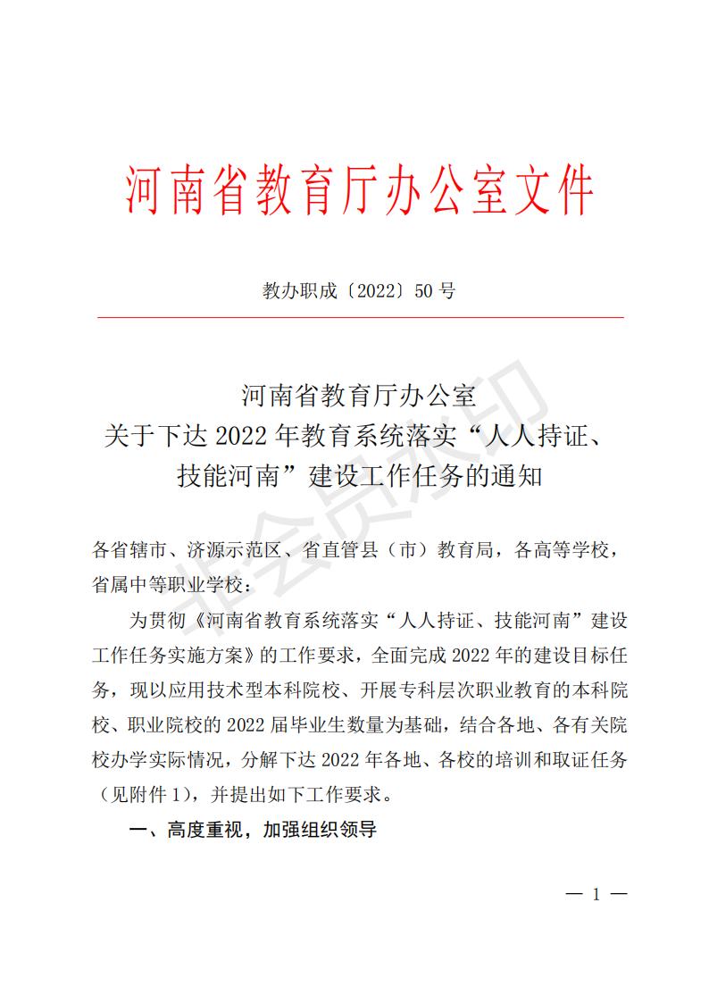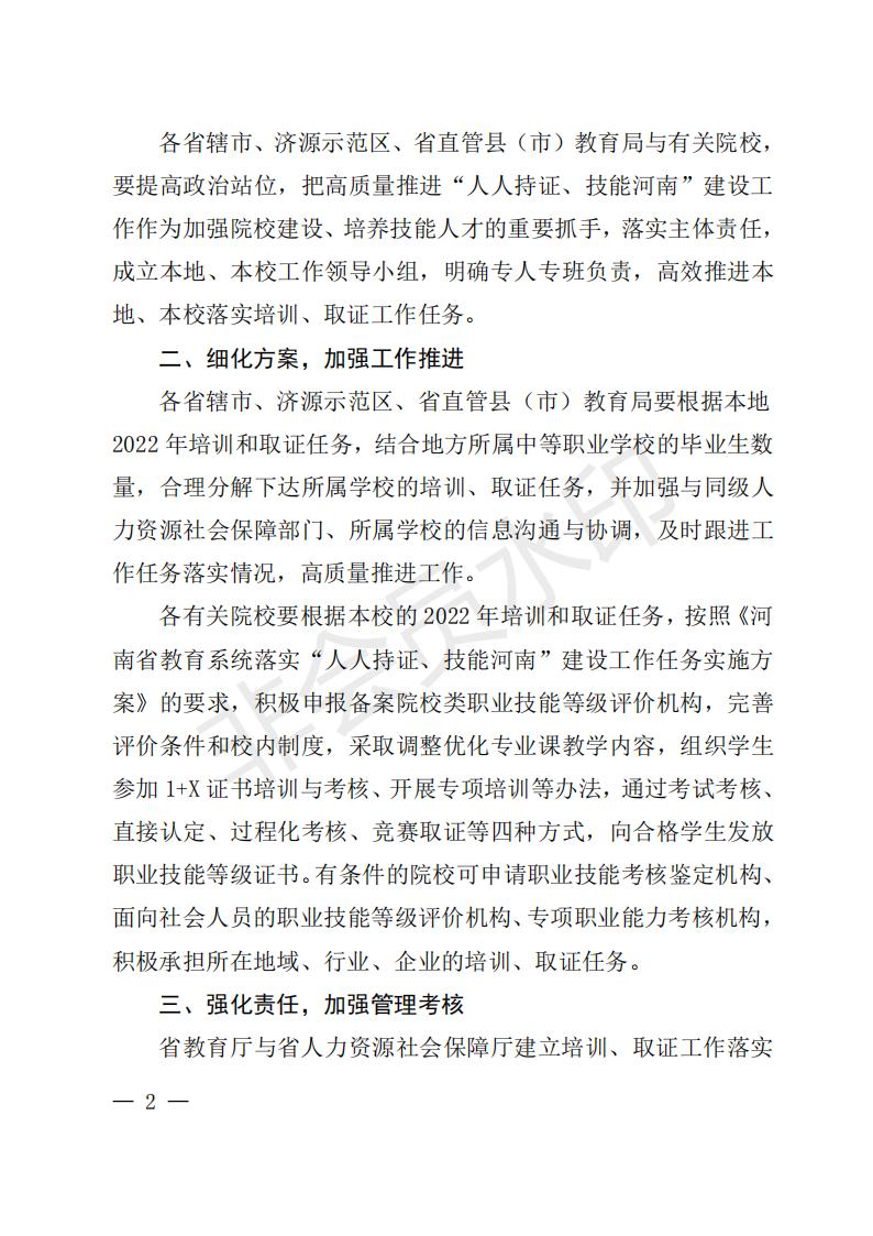 2022 年教育系统落实“人人持证、技能河南”建设工作任务的通知