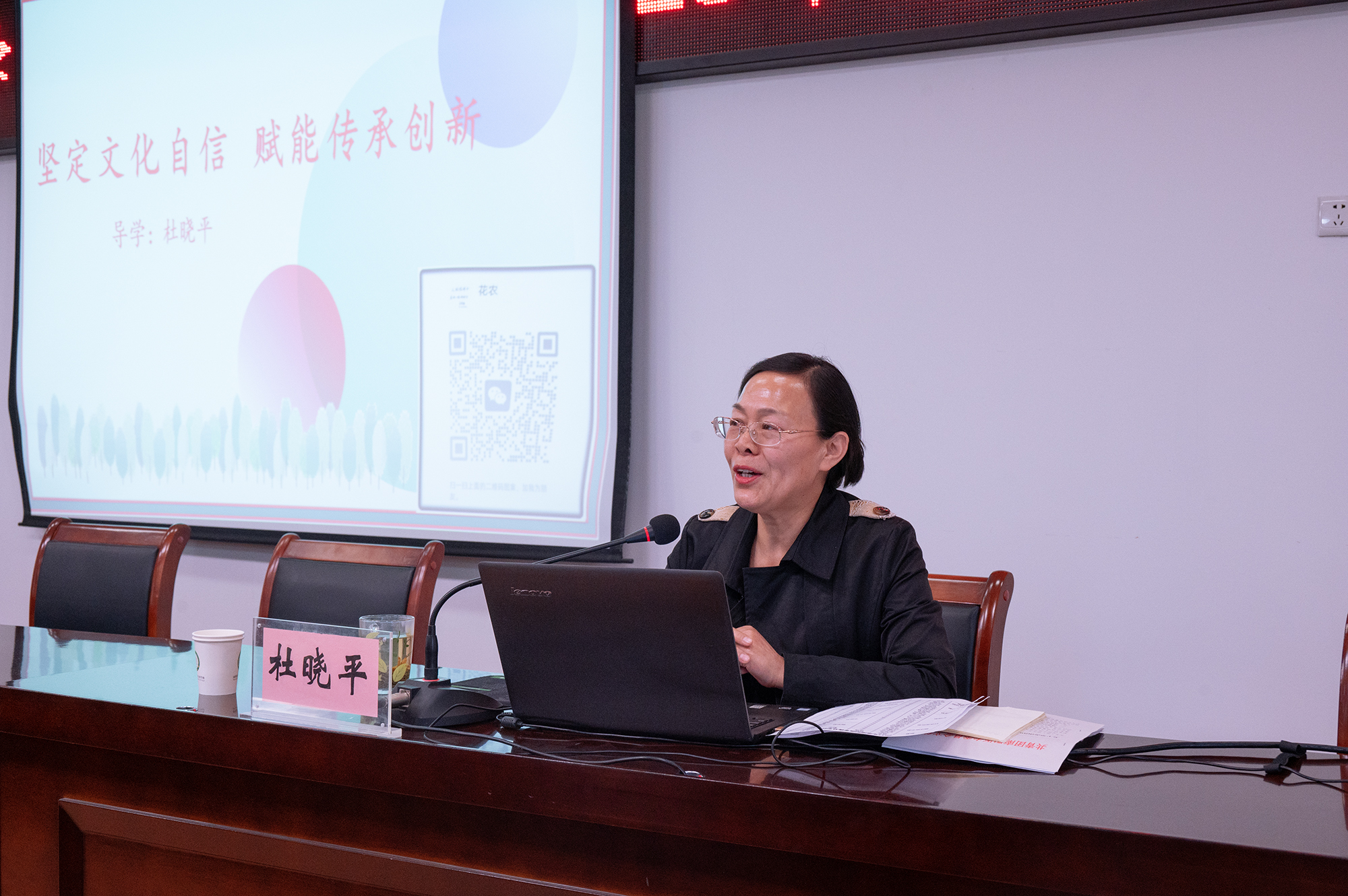 杜晓平作《坚定文化自信 赋能传承创新》专题讲座,围绕文化与传承创新、习近平总书记的文化情怀、文化与科技深度融合三个方面展开论述。她勉励同学们要学思践悟,坚定理想信念;要知行合一,坚持学以致用;要创先争优,坚守使命担当。希望同学们在思想、实习、实践、服务、就业上深耕细作,努力成长为“参天大树”,推动中华优秀传统文化更加“枝繁叶茂”。(编审 华俊皓)