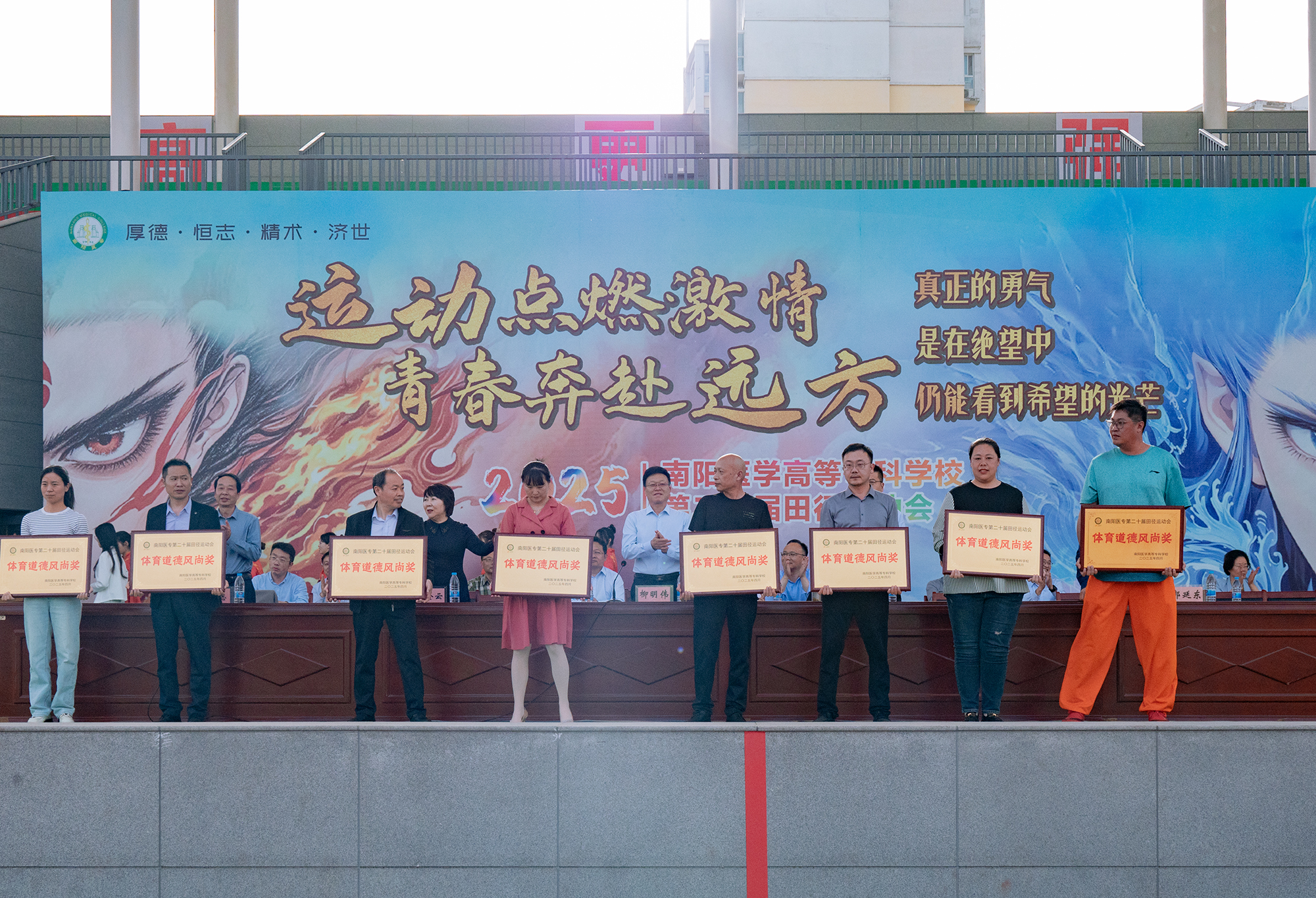 本网讯(文/学校体育运动委员会办公室 李俊杰)4月16日,南阳医专第二十届田径运动会闭幕式在仲景西区举行。在家领导班子成员出席,学校相关部门负责同志及各系院学生代表参加。党委副书记刘涛主持。