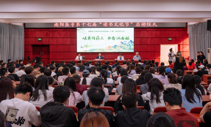 本网讯(文/图书馆 刘力力)4月23日上午,以“岐黄传薪火 书香润杏林”为主题的南阳医专第十七届“读书文化节”启动仪式在仲景西区图书馆举行。校长范真、纪委书记刘金云、工会主席杜晓平出席,学校相关部门负责同志及师生代表参加。副校长郭延东主持。