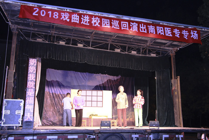 本网讯(文/宣传部 张旭斌)10月21日晚,河南省2018“戏曲进校园”巡回演出在多盈手机在线登录主校区篮球场精彩上演。校党委宣传部、学生处、各系(部、院)相关负责人及2018级全体学生6000余人观看了演出。