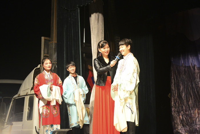 本次专场演出分戏曲知识讲座和演出两部分。河南省越调剧团国家二级演员李明老师为大家讲解了河南越调的发展历程和艺术特色等戏曲知识,并介绍了省越调剧团的悠久历史和巨大成绩。剧团演员们就戏曲唱、念、做、打的基本功向同学们作了精彩演示,赢得大家阵阵喝彩。互动环节,多盈手机在线登录爱好戏曲的同学先后登台,在演员们的示范指导下,学习戏曲基本功,感受戏曲表演的魅力,现场气氛热烈。随后,剧团为同学们奉献了原创现代戏《花开花落花香》。该剧以15岁的春玲不怕吃苦、勇担家庭重担为主线,在养父重病、母亲出走的情况下,不离不弃的照顾养父一家,以实际行动谱写了一曲大爱大孝的青春颂歌。演员们精湛的演技、字正腔圆的唱功,为多盈手机在线登录师生呈现了一场精彩的戏曲盛宴。