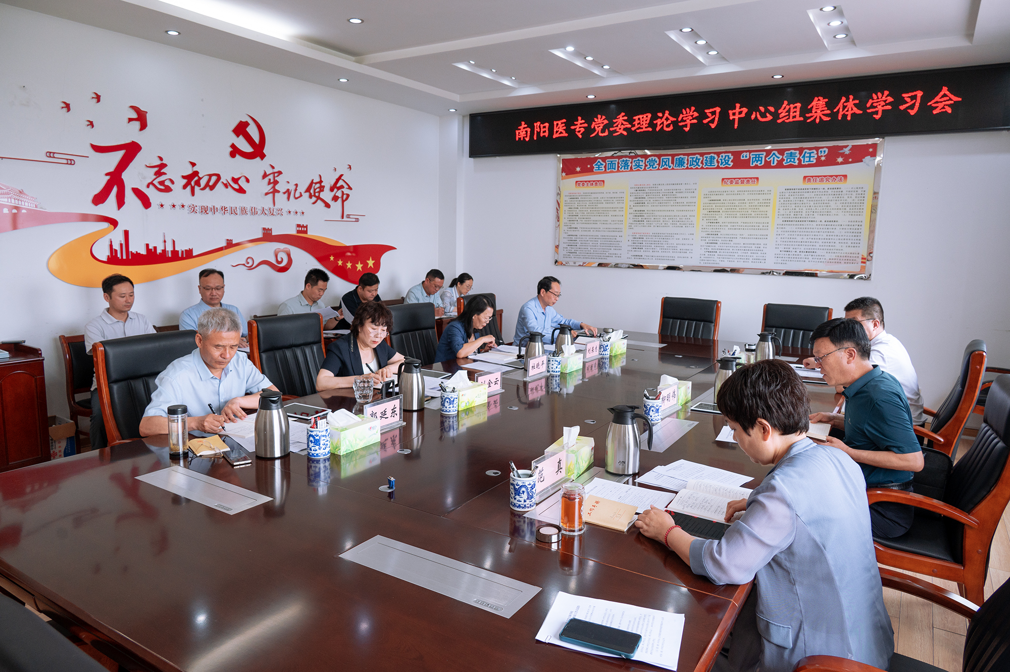 会议传达学习习近平总书记在河南考察时的重要讲话精神。柳明伟指出,习近平总书记的重要讲话,高瞻远瞩、思想深刻、内涵丰富,为进一步做好河南工作指明了前进方向,提供了根本遵循。我们要把学习贯彻习近平总书记重要讲话精神作为重大政治任务,聚焦“两高四着力”,把握奋进方向,主动担当作为。立足医学教育实际,优化学科专业布局,深化产教融合,服务“健康中原”战略;同时强化基层治理,以高质量党建提升治理效能,严守意识形态阵地,筑牢校园安全防线,推动总书记重要讲话精神在南阳医专落地见效。