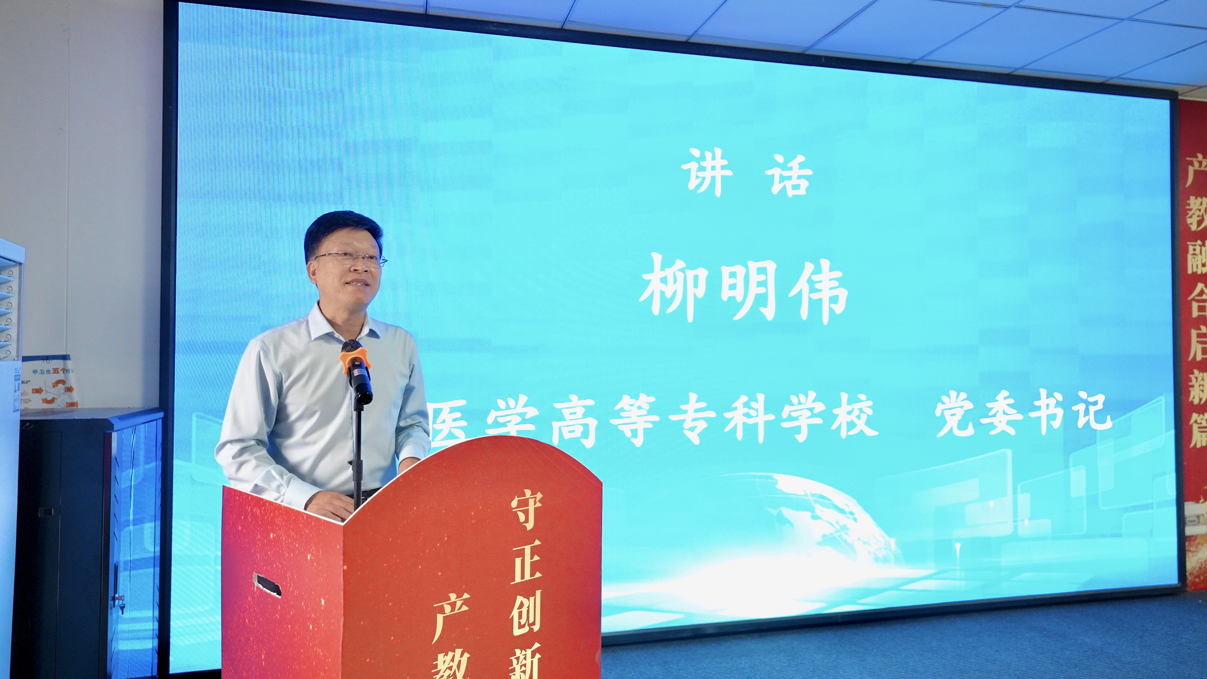 柳明伟作总结讲话。他指出,综合体将聚焦“校企协同、校院联动、资源共享”,通过共建实训基地、优化育人体系,推动教育链、人才链与产业链深度融合;依托“非遗+产业”模式,打造技艺转化、数字传播、社会服务一体化体系,助力康养产业升级与文旅经济发展。同时,二附院将发挥医保试点优势,推动中医适宜技术门诊服务落地,构建“医教研产文”协同发展新模式。他强调,学校将以此次启用仪式为契机,进一步加强与企业的合作,不断完善综合体的功能,提升综合体的服务水平。他相信,在各级领导的关心支持下,在全体师生的共同努力下,在社会各界的广泛参与下,南阳医专传统医药“非遗”传承创新综合体一定能够取得更加辉煌的成就,为南阳建设省域副中心城市、为健康中国建设做出更大的贡献。