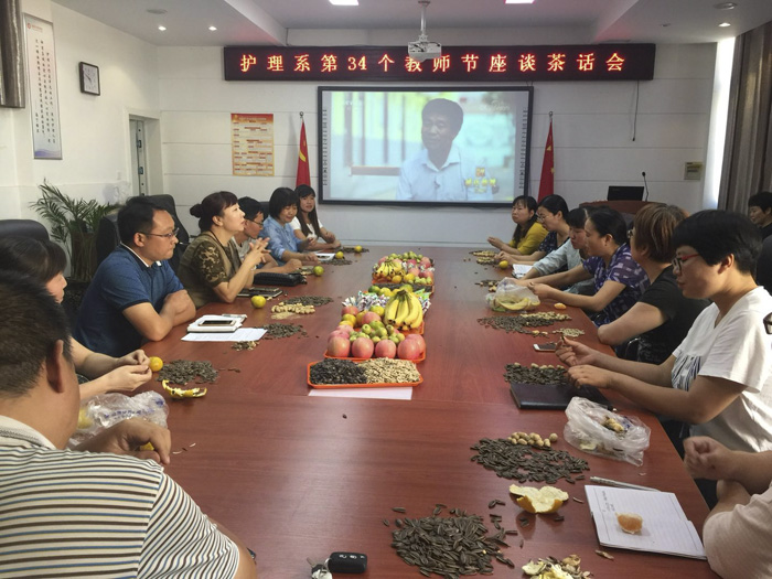 本网讯(文/护理系 李明哲)在第34个教师节来临之际,9月10日下午,护理系举办庆祝教师节暨师德师风建设座谈茶话会,表达诚挚的祝福,弘扬优良的教风。护理系全体教职工参加座谈会。