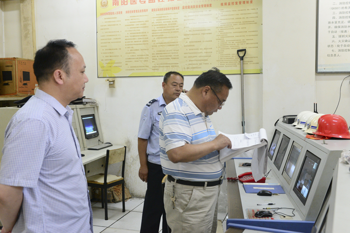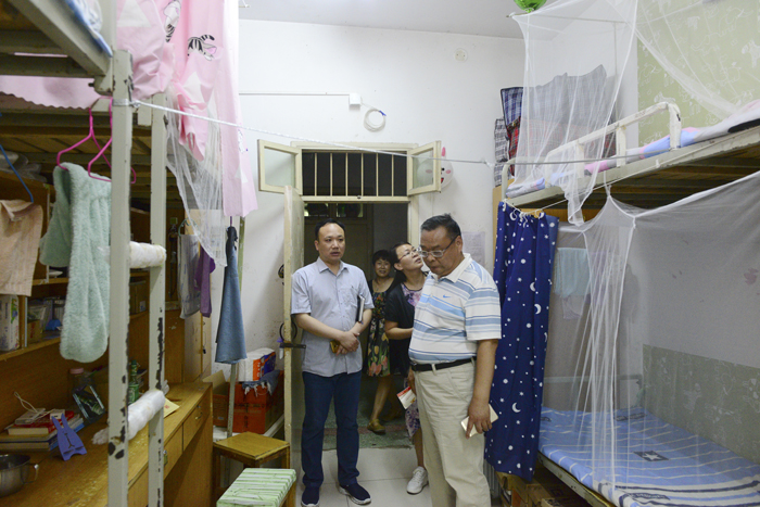 本网讯(文/党办 杨晓兵)为进一步抓好全省教育系统安全稳定工作督导检查情况整改落实,2018年6月11日上午,党委副书记逵应坤同志带队深入到校园监控室、学生食堂、学生宿舍进行了实地查看,重点检查了保卫处值班记录、食品留样柜,仓库挡鼠板及宿舍安全卫生等情况,并要求相关部门负责同志严格对照整改清单,抓好整改任务落实,确保校园安全稳定。(编审/杨金运 摄影/程安琪)