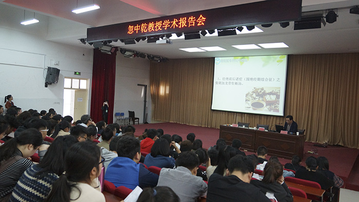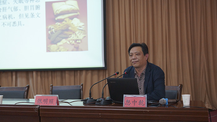 会上,忽院长用中医传统理论结合自己丰富的临床经验,为大家作了以《和解枢机之证治感悟》为题的讲座,深刻阐述了自己对和解少阳的理解,并详细介绍了和解少阳代表方剂小柴胡汤、大柴胡汤、柴胡加龙骨牡蛎汤等化裁治疗绝经前后诸证、眩晕、肥胖症、抑郁症等的临床心得。随后,忽院长分析了当前中医药发展的大好形势,鼓励广大师生刻苦专业,学好中医,将中医药事业发扬光大。忽院长与广大师生进行了相互探讨、交流经验,现场气氛十分活跃。(编审/李峰松 摄影/中医系)
