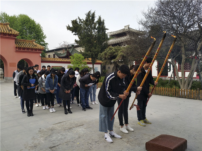 本网讯(文/中医系 孙立)为更好的继承发扬仲景思想文化内涵,2018年4月1日上午,中医系党总书记张明丽,辅导员孙立老师带领2017级“仲景实验班”学生到南阳医圣祠祭拜医圣张仲景。