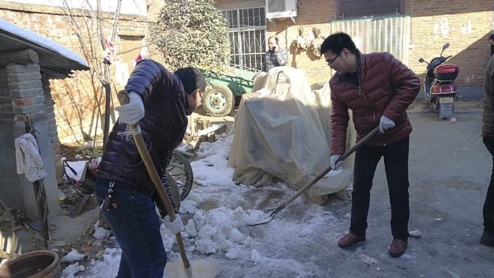 到达官坡岭村后,同志们立马拿出自带的清洁工具,逐户帮助贫困群众清除卫生死角、铲除院内积雪,整理户容户貌。张书记亲自将自带的棉被送给独居的五保老人,并叮嘱老人做好保暖防护工作。周青玲同志深入邻居街坊了解困难群众动态,一再嘱托困难群众“有困难尽管说”“晚上尽量不要外出,确保人身安全”。宋宇书记对贫困群众进行了详细问诊及病历查看,交代了其在饮食起居等方面应注意的事项,鼓励患者正确面对疾病,积极治疗,争取早日康复。