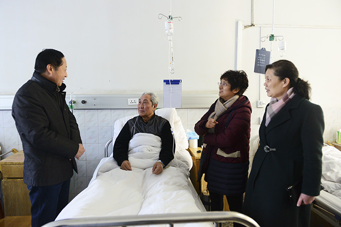 本网讯(文/离退处 艾静)为了弘扬中华民族尊老、敬老、助老的传统美德,2018年新春佳节来临之际,在家的校领导带队,在离退处同志的陪同下,冒着细雨严寒看望慰问了部分老领导、离休干部、生病住院、家庭困难的老同志,向他们送去节日的问候并致以新春的祝福。