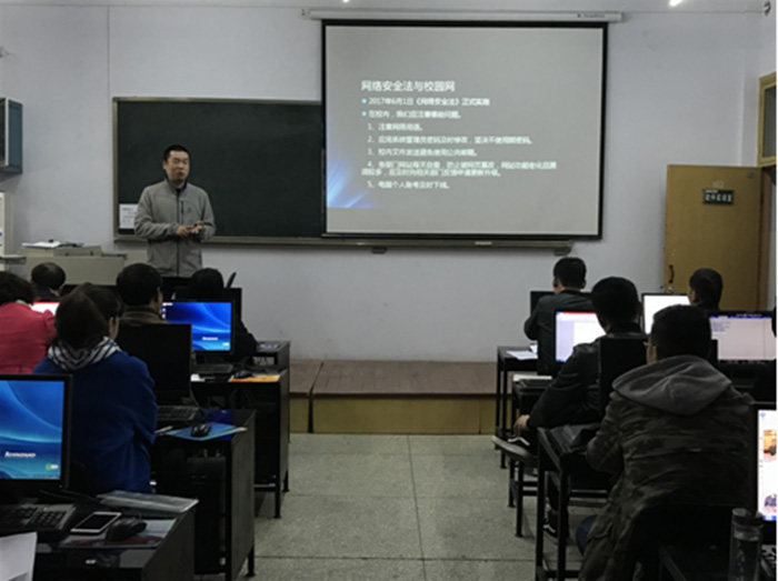会上,网络中心主任孙智蔚就培训内容做了介绍。网络科长程渊主讲了网络运维和网络安全方面的知识;骆老师就目前学校网站管理中存在安全问题及如何应对做了详细的讲解;张同汉老师为方便教职工远程办公的VPN账号的使用方法进行了培训。