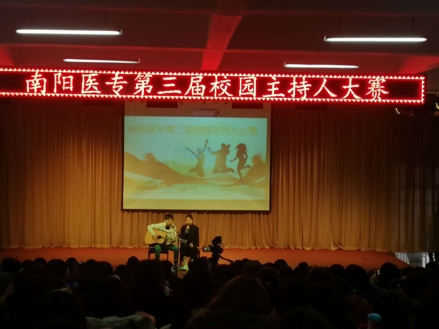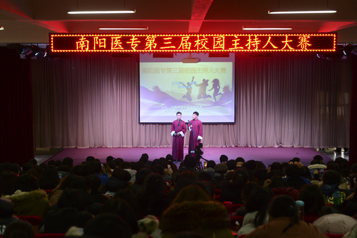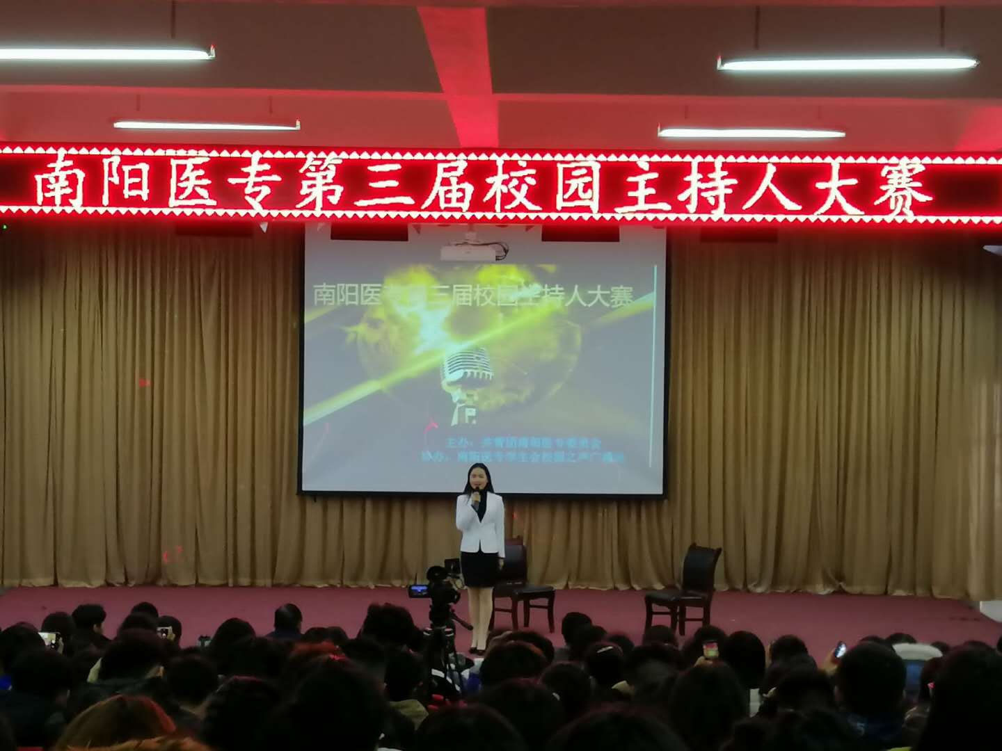 本网讯(文/校团委 马黎莉)12月20日下午,由校团委主办,校学生会广播站协办的南阳医专第三届校园主持人大赛决赛在新东区学术报告厅隆重举行。副校长郭万周,党委办公室主任杜晓平、党委组织部部长张浩、学生处处长孟晓红、校团委书记徐晓杰等领导出席本次活动。党委办公室副主任王萍、党委组织部副部长孙超丽、党委宣传部副部长杨金运、人事处副处长李巍、教务处副处长王春成担任本次大赛评委,各涉学系(部、院)团总支书记、学生代表400余人观看了比赛。