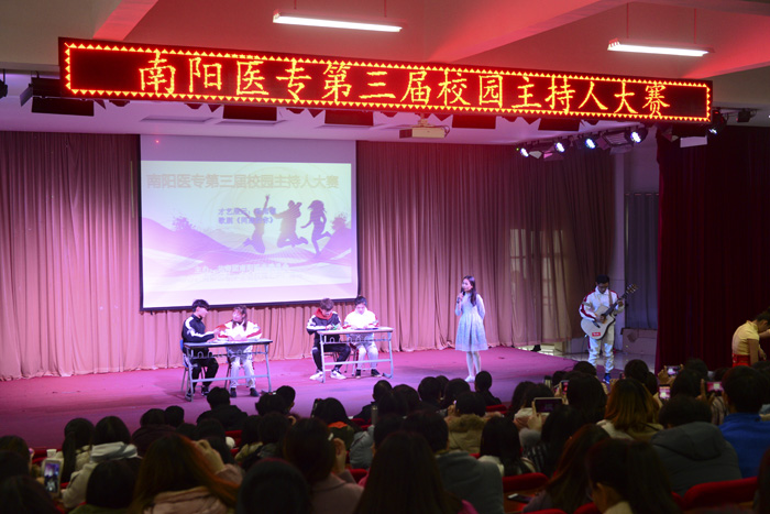 副校长郭万周为大赛致词。他说,主持人大赛提高了学生的综合素质,营造了浓厚的校园文化氛围,为推动校园文化建设做出了贡献。比赛共分挑战主持人、才艺展示两个环节,10位决赛选手用精准流利的普通话进行了自我介绍,展现自己的风度和个性。在挑战主持人环节,选手们或模仿人物访谈,或模仿新闻评述,用幽默诙谐的语言,创新出彩的主持风格令评委赞叹不已。才艺展示环节,选手们各显神通,有的高歌一曲,尽情释放青春的活力;有的深情朗诵,用诗歌表达丰富的感情;有的吉他弹唱,婉转悠扬的曲子让大家叹服。比赛现场精彩纷呈,高潮迭起,掌声不断。最终经过激烈角逐,护理系的杨雨馨荣获金话筒奖,中医系的高雅婷和临床系的王焯阅荣获银话筒奖,国教院的尤智豪、李慧、医技系的别慧文荣获铜话筒奖。来自医技系的别慧文获得了最具人气奖,护理系的杨雨馨获得了最佳风采奖,临床系的王焯阅获得了最佳才艺奖。