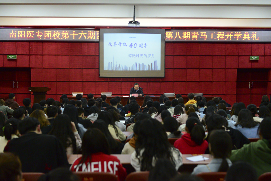 开学典礼在庄严的国歌声中拉开序幕。孟晓红宣读《关于举办南阳医专团校第十六期团学骨干培训班暨第八期青年马克思主义者培养工程的通知》,校学生会广播站站长王熙代表全体学员表达了立志做坚定合格的马克思主义者的决心与信心。