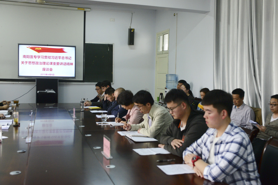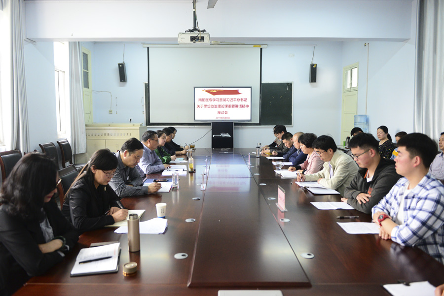 本网讯(文/政教部 雷雨泰)4月8日下午,南阳医专组织召开了学习贯彻习近平总书记关于思想政治理论课重要讲话精神专题座谈会。校党委书记全新明出席,校党委办公室、党委组织部、党委宣传部、团委、学工部、教务处等部门领导和政教部教师代表、涉学系院学生代表共计30余人参加。校党委副书记逵应坤主持会议。