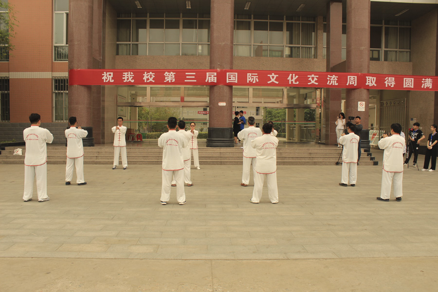 本网讯(文/国际教育学院记者站 高山云 李静静)5月17日上午,多盈手机在线登录合作院校来华交流师生在仲景西区3号教学楼前学习“易筋经”。中医系肖跃红教授进行了讲解示范,认真指导,中医系两位学生在不同方位师范了动作分解。