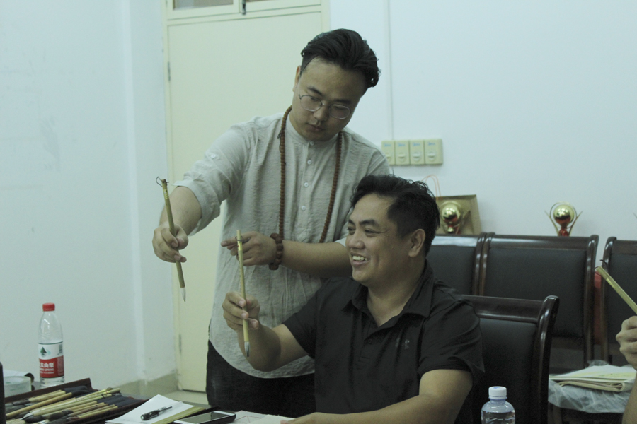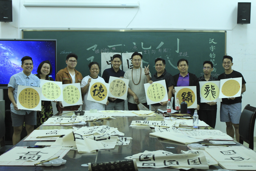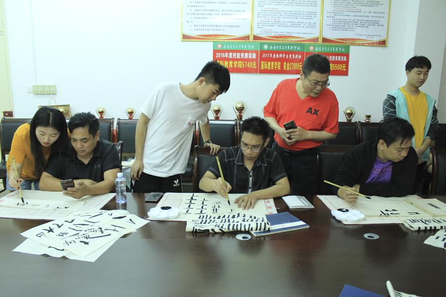 交流师生在3号教学楼423教室体验了中国书法。多盈手机在线登录学生书法社社长裴廷君向国外交流师生介绍了中国书法五千多年的历史,讲解了文字的演变过程、分类、中国汉字的基本笔画和毛笔书写执笔的正确握法。通过练习,交流师生初步掌握了执笔方法,能用毛笔书写汉字。最后,裴廷君社长赠予每人一幅自己的书法作品作为留念。
