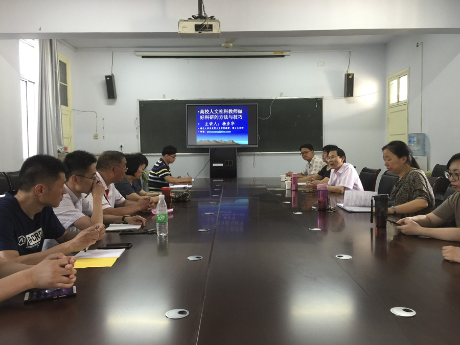 本网讯(文/政教部 雷雨泰)为进一步提高多盈手机在线登录思想政治理论课教师人文社科科研水平,落实好校党委书记全新明在政教部调研时的讲话精神,加强思政理论研究工作,6月13日下午,政教部邀请湖北大学博士生导师杨业华教授来多盈手机在线登录讲学。政教部主任冯晓青主持讲座,思政课专兼职教师参加活动。