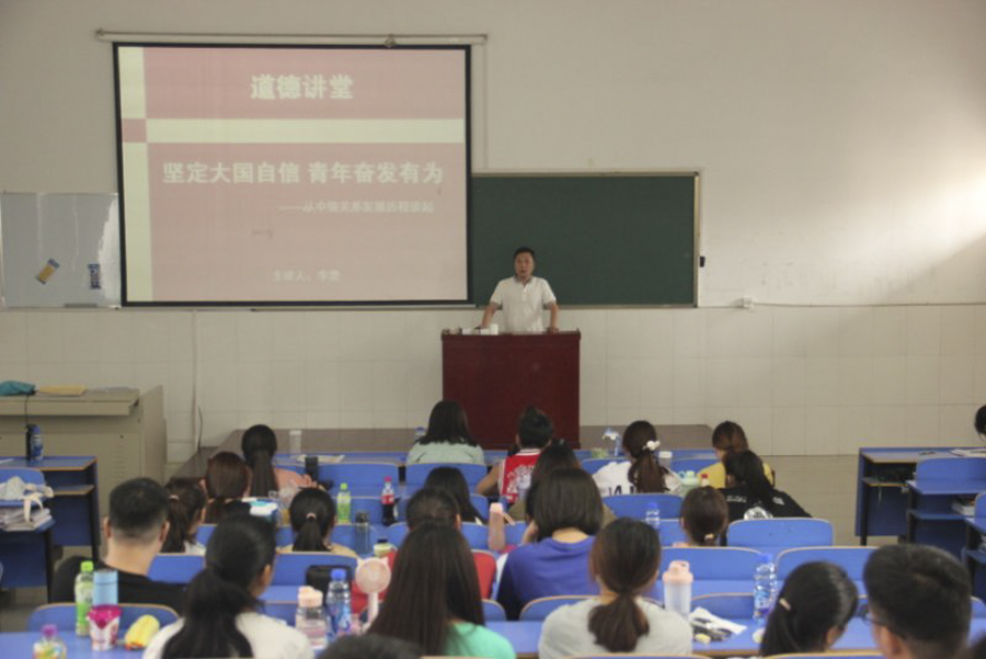 本网讯(文/国教院记者站 魏雅伦)6月26日下午,多盈手机在线登录在仲景西区3号教学楼505教室举办以“坚定大国自信,青年奋发有为”为主题的道德讲堂。本次活动由国际教育学院承办,辅导员李斐老师主讲,百余名师生参加活动。