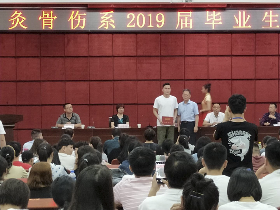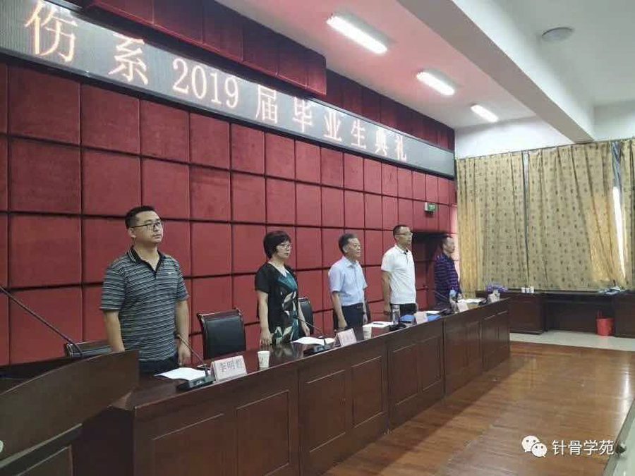 典礼在庄严的国歌声中拉开帷幕。系副主任陈春华宣读了《针灸骨伤系关于2019届全日制普通专科学生毕业的决定》,并对2019届毕业生颁发了毕业证书。系学工办主任燕远伟宣读了《针灸骨伤系关于2019年度应征入伍先进个人表彰的决定》。系党政办主任李明哲宣读了《针灸骨伤系关于2019年度优秀实习生的表彰决定》和《针灸骨伤系关于2019年度优秀毕业生的表彰决定》。