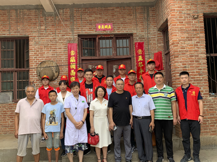 本网讯(国际教育学院 习茵)7月11日,我院开展以“青春心向党,建功新时代”为主题的暑期“三下乡”社会实践活动,党总支书记张少羽、院长李弋、副院长范卫杰、党政办主任张蕊、团总支书记习茵、辅导员、志愿者服务队伍和一附院专家张玉参加活动。