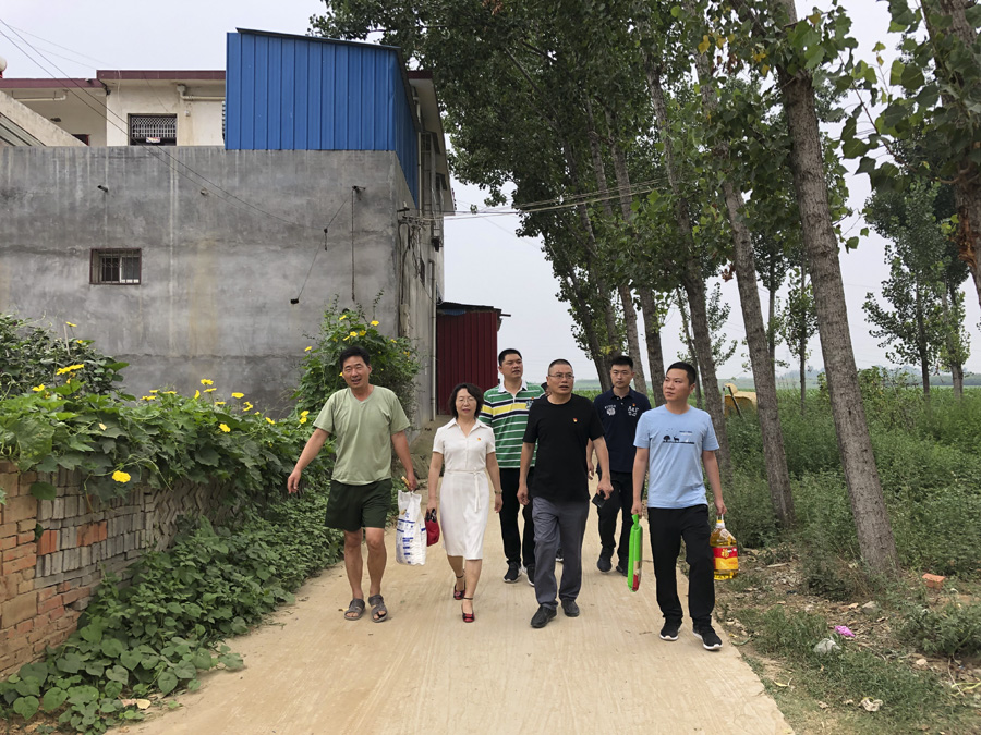 本网讯(文/国际教育学院 李斐)7月10日上午,我院张少羽书记、李弋院长、范卫杰副院长、习茵主任、辅导员及优秀班主任代表一行6人前往方城县广阳镇佟庄村,到我院2017级贫困生栗同学家,开展“教育精准扶贫,关爱贫困学生”家庭走访活动。