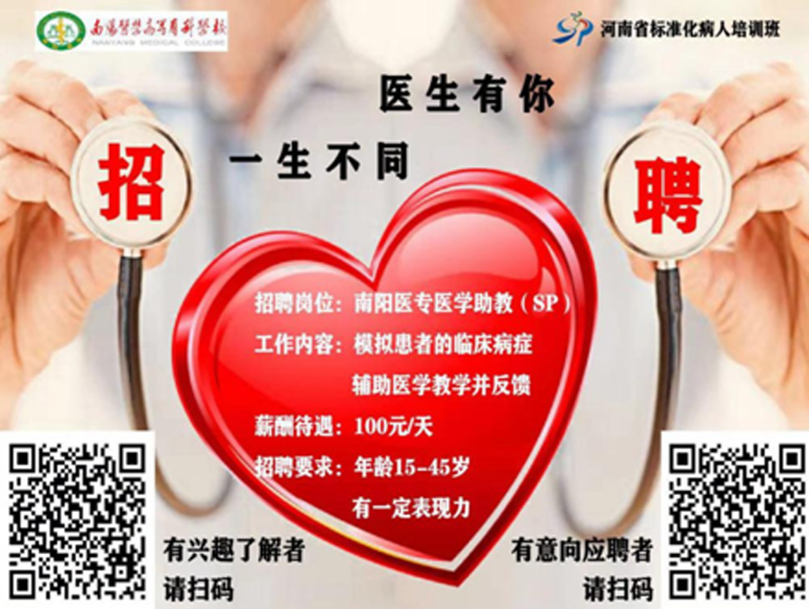 标准化病人(简称SP),又称为模拟病人,是指那些经过标准化、系统化培训后,能准确表现病人实际临床症状的健康人。南阳医专于2018年建立河南省标准化病人培训基地,并招收第一届标准化病人,经过培训,已建成了全省第一支系统、规范、稳定的SP队伍。为了更好地服务地方医疗卫生教育事业,多盈手机在线登录开展了第二届SP招募培训活动。