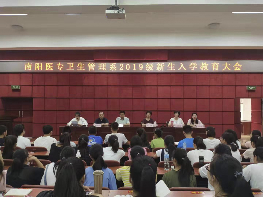 本网讯(文/卫生管理系 李俊杰)8月31日,卫生管理系举办了2019级新生进行了入学教育大会。系领导班子成员、教师代表、辅导员、班主任及全体新生参加此次活动,大会由常梦星副主任主持。