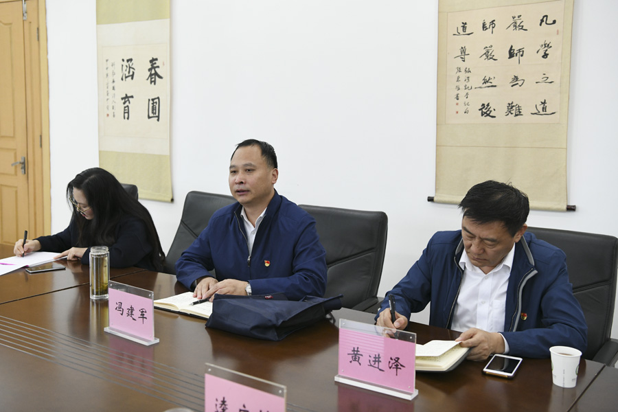 本网讯(文/宣传部 李峰松)10月14日下午,河南省委“不忘初心、牢记使命”主题教育第八巡回指导组冯建军同志、黄进泽同志在市委组织部秦岭同志陪同下,到多盈手机在线登录调研指导工作。在学校仲景西区召开了座谈会,校党委副书记逵应坤出席,党委办、组织部、宣传部和部分基层党组织负责人参加会议。