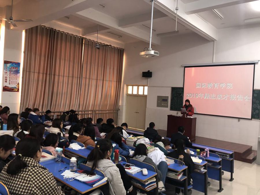 本网讯(文/国际教育学院 李斐)为深入贯彻执行党的十九大精神,大力推进教育扶贫,切实做好资助育人工作,展示当代大学生励志图强、奋发向上的精神风貌,12月5日下午,国际教育学院2019年励志成才优秀大学生报告会在3号教学楼401教室举行,学院专职辅导员和受资助的学生参加。