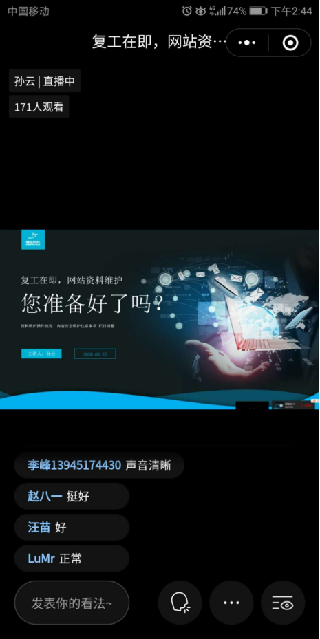 培训中设置提问环节,老师们就各部门网站在日常维护中遇到的问题与系统工程师进行了线上讨论。
