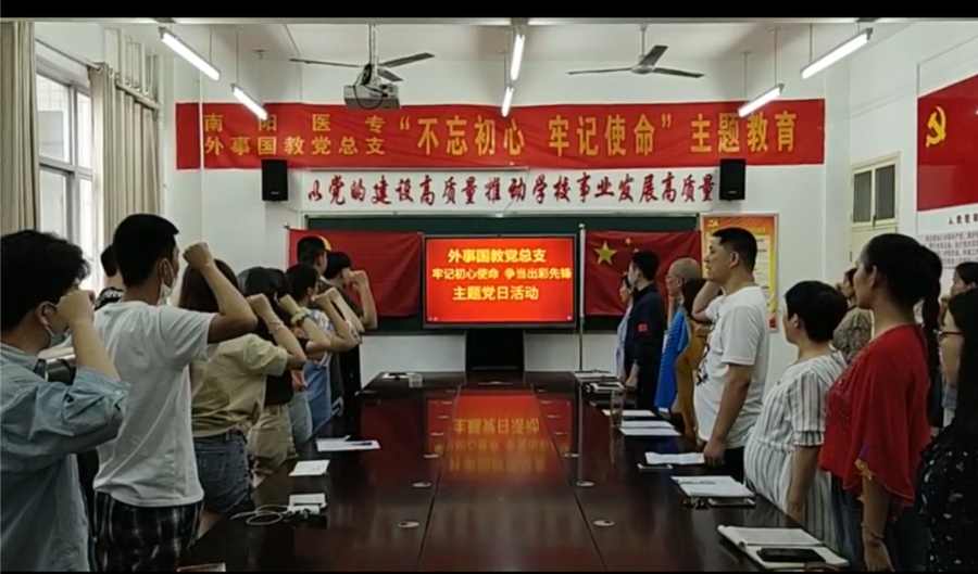 本网讯(文/国际教育学院 张蕊)为庆祝中国共产党成立99周年,进一步增强党员党性观念,激发爱党爱国情怀,7月1日下午,外事国教党总支组织开展“牢记初心使命、争当出彩先锋”主题党日活动。
