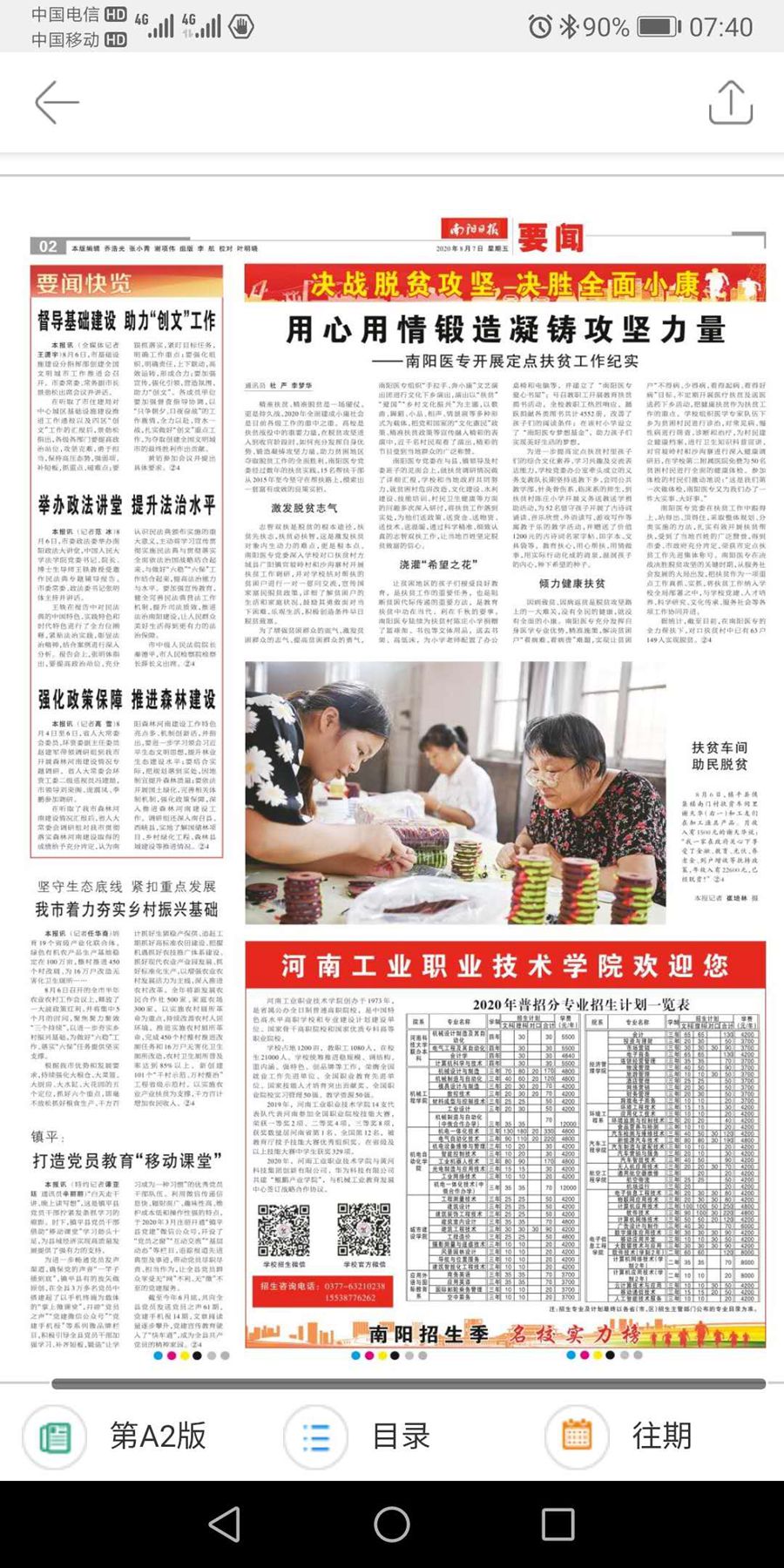 南阳医专党委在与县、镇领导及村 委班子的见面会上,就扶贫调研情况做 了 详 细 汇 报 ,学 校 和 当 地 政 府 共 同 努 力,就贫困村危房改造、文化建设、水利 建设、技能培训、村民卫生健康等方面 的问题多次深入研讨,将扶贫工作落到 实处,为他们送政策、送资金、送物资、 送技术、送温暖,通过科学精准、细致认 真的志智双扶工作,让当地百姓坚定脱 贫致富的信心。