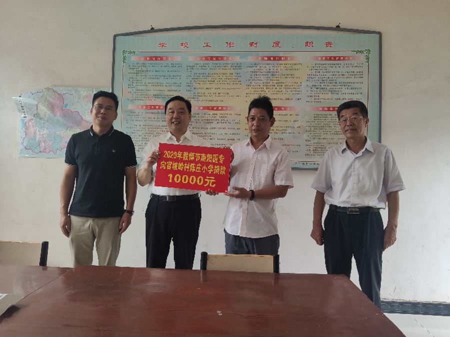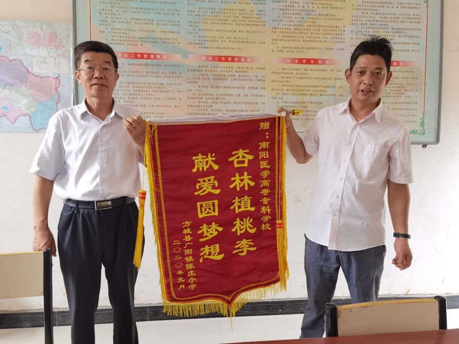 此次慰问,多盈手机在线登录为陈庄小学和沙沟寨小学各发慰问金10000元。在陈庄小学,全书记一行听取了学校的基本情况介绍及“南阳医专梦想基金”的使用情况,该校负责人现场赠予多盈手机在线登录“杏林植桃李、献爱圆梦想”的锦旗,感谢近年来对陈庄小学的大力支持和帮助。在沙沟寨小学,全书记一行仔细察看了校园环境、现场听取了学校发展情况介绍,深入了解了学校教育教学管理等。在交谈过程中,全书记讲到,南阳医专作为官坡岭村和沙沟寨村的帮扶单位,会充分发挥教育资源优势,将全力支持小学教育的发展,将继续为两所小学在硬件设备、校园基本建设等方面给予支持和帮助。