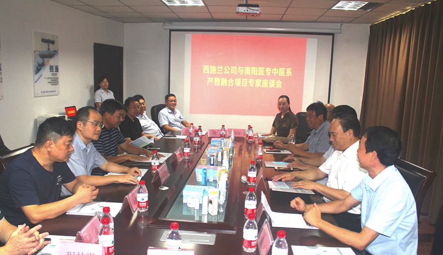 本网讯(文/中医系 李昌)9月11日下午,南阳医专中医系与西施兰公司产教融合项目专家座谈会在西施兰公司隆重举行。参加座谈会的专家有:学校教务处、人事处科研中心负责人,二、三附院的业务院长及一、二、三附院皮肤科主任、疼痛科主任;中医系党总支书记、实训中心主任、中医外科教研室主任及专兼职教师。南阳医专教务处处长刘荣志主持座谈会。