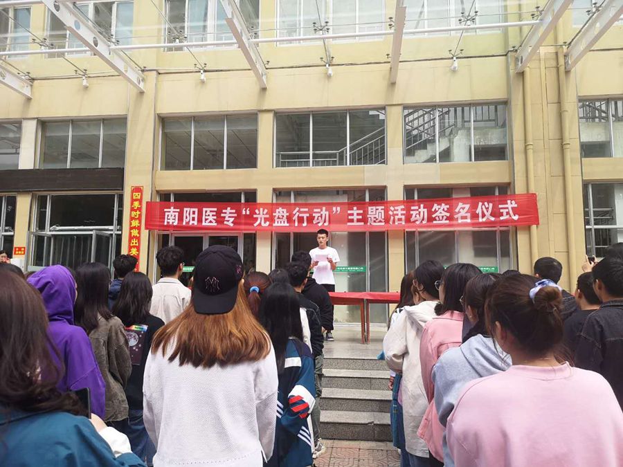 9月23日中午,校学生会在仲景西区餐厅门前举行了“光盘行动 节约校园”签名活动。校学生会学生代表崔林涛向全体同学发出“光盘行动 节约校园”倡议书,号召同学们 “厉行节约、反对浪费”要从我做起,从现在做起。随后,同学们在“光盘行动 节约校园”横幅上签下自己的名字,表达了自己认真践行“光盘行动”,勤俭节约不浪费的决心。