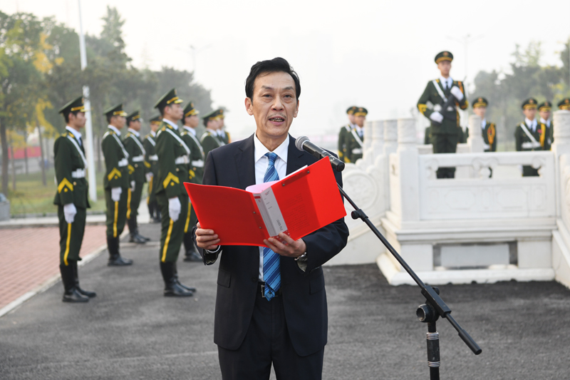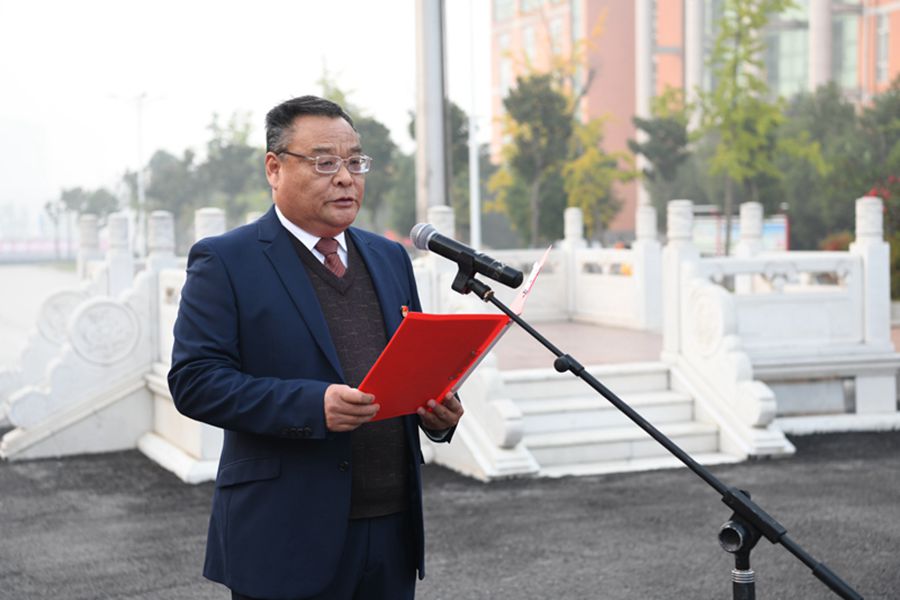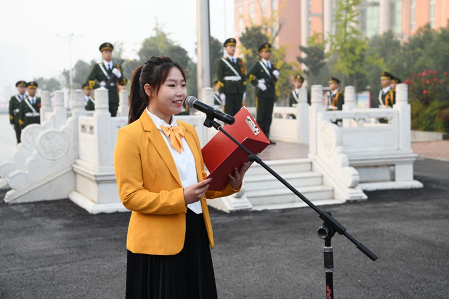 校长王立义同志讲话。他希望全体师生进一步树立家国情怀,把自身前途与党和国家命运紧密联系起来,将有限而宝贵的青春投入到建设中国特色社会主义事业和实现中华民族伟大复兴的历史进程中,在全球抗击新冠肺炎疫情的常态化背景下,牢记使命,勇于担当,用自己的成就为国旗增色!